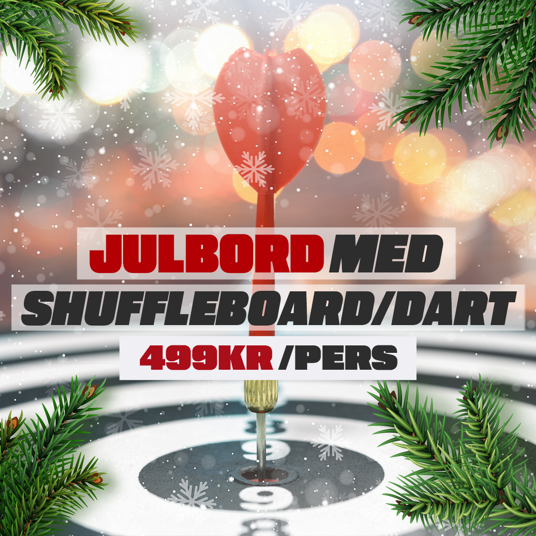 Ta med gänget och käka ett gott julbord tillsammans med 1h spel i Gamezone där du kan välja mellan shuffelboard eller dart! Endast datumen nedan gäller detta priset! Perfekt för dig som vill äta julmat och köra en lättare aktivitet!